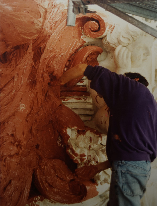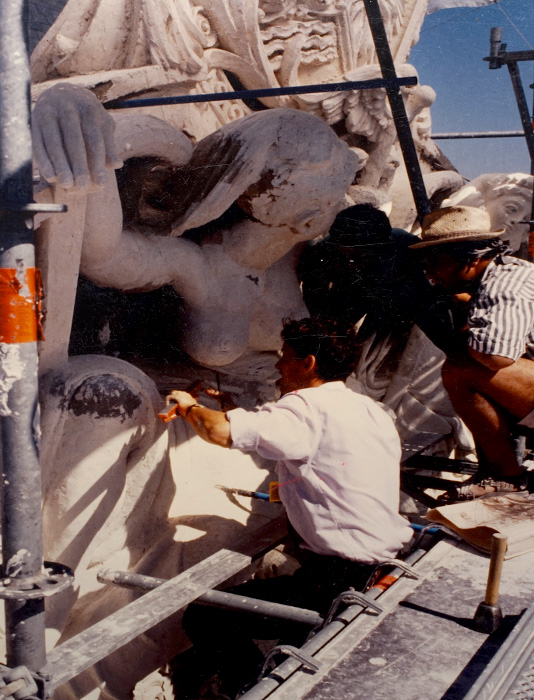Prestations réalisées : direction de travaux de restauration Monument Historique ; expertise technique ; consolidation ; démontages/remontages structurels ; ragréage ; nettoyage ; moulage/modelage ; sculpture neuve ; réintégration chromatique