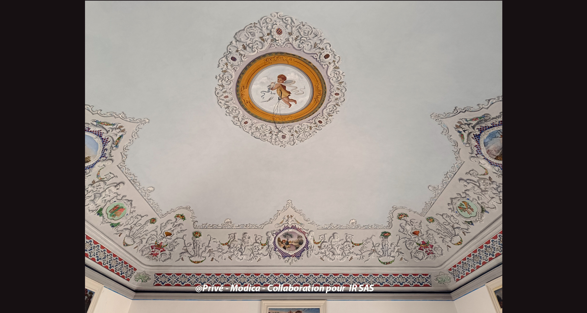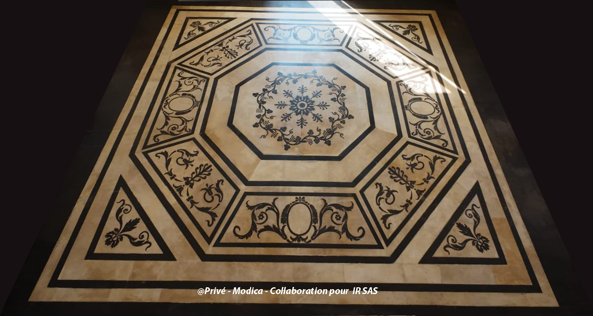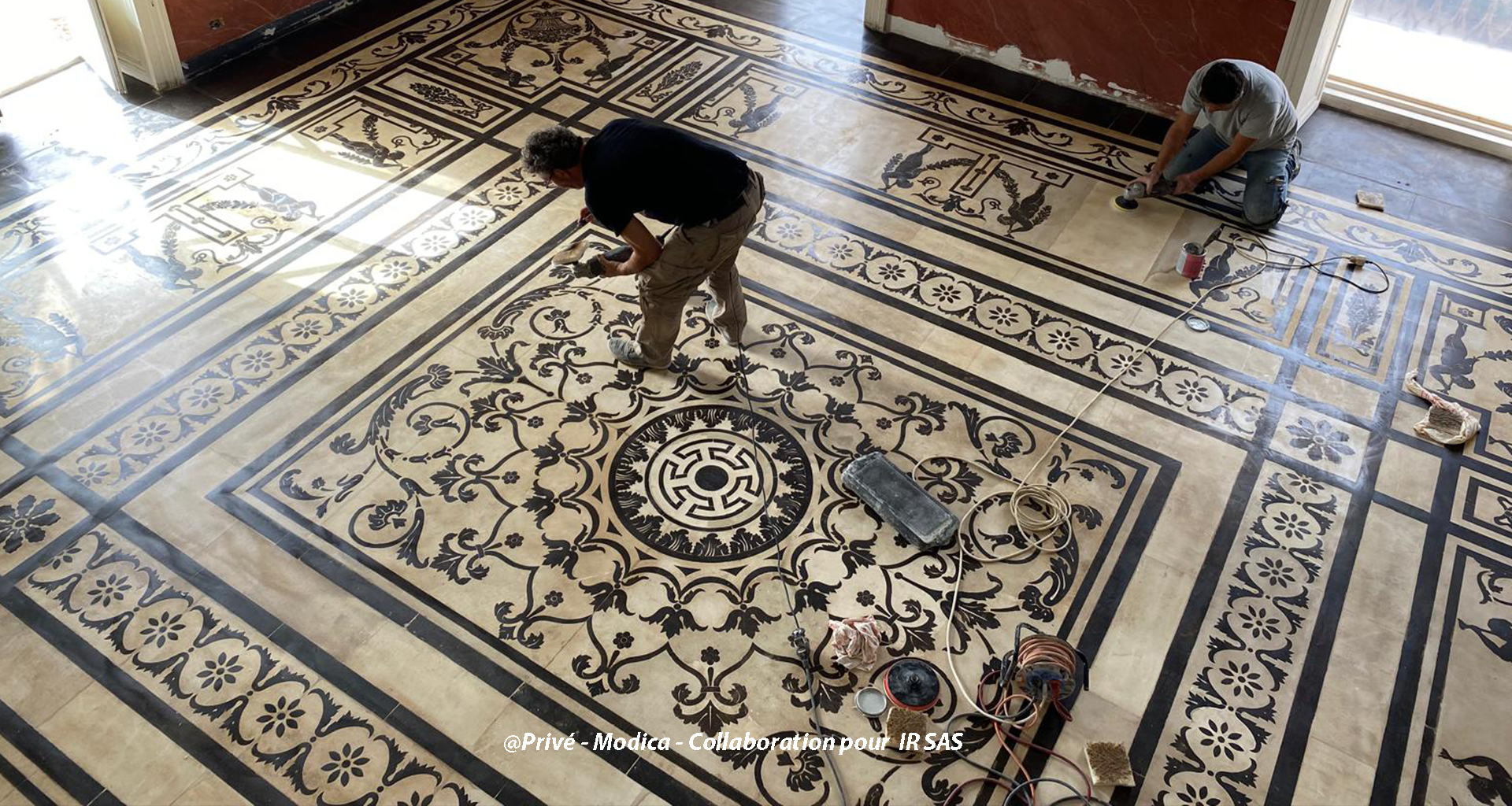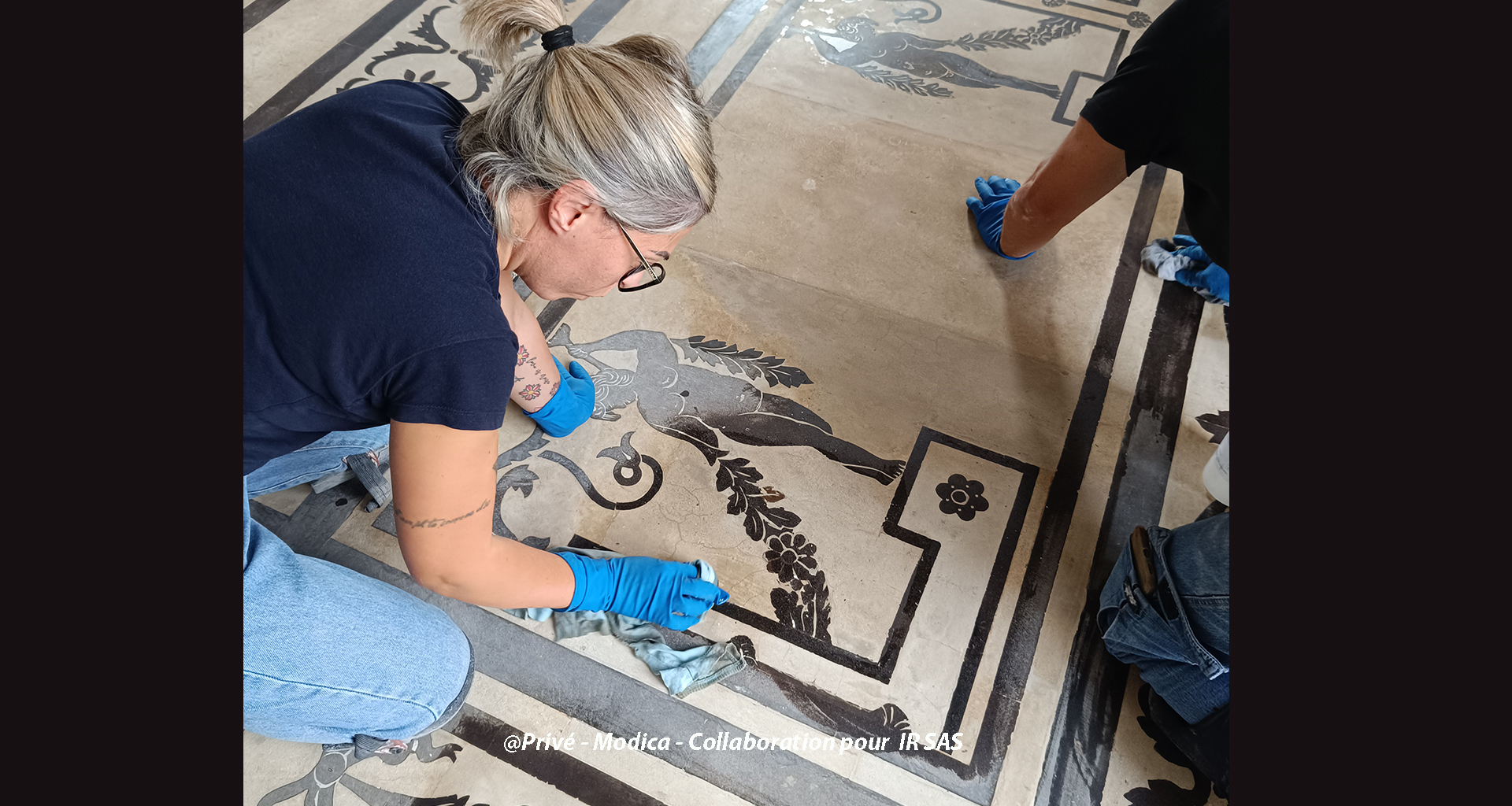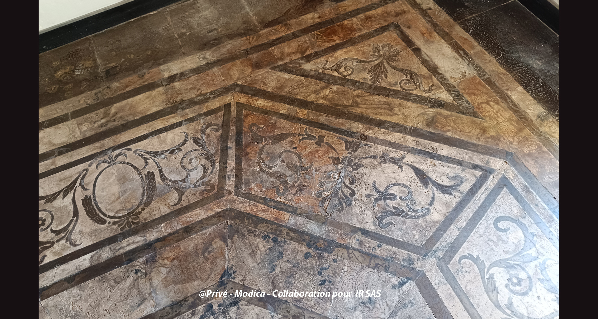 Substrats restaurés : marqueterie de pierres (sols); peintures décoratives ; peintures à l'huile ; sculpture sur pierre