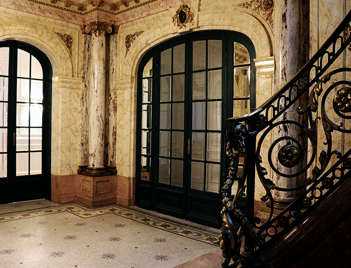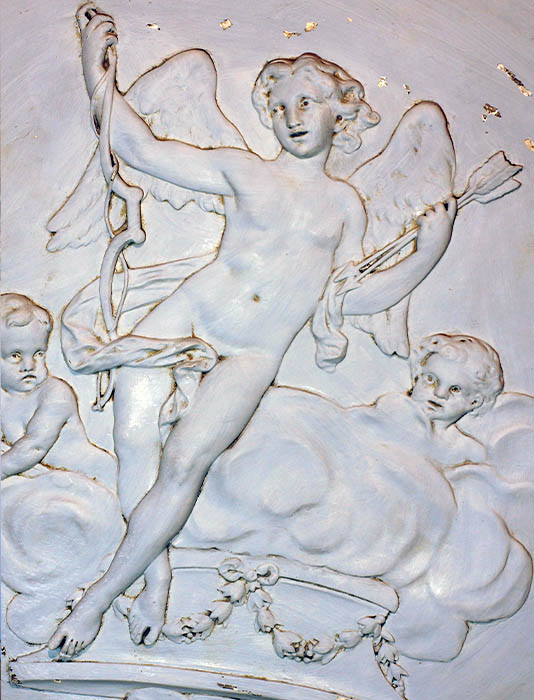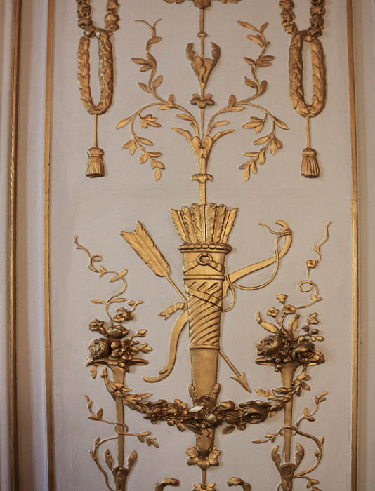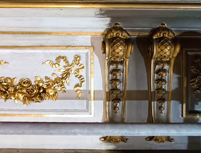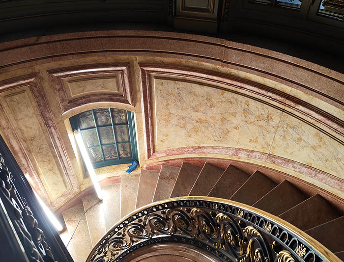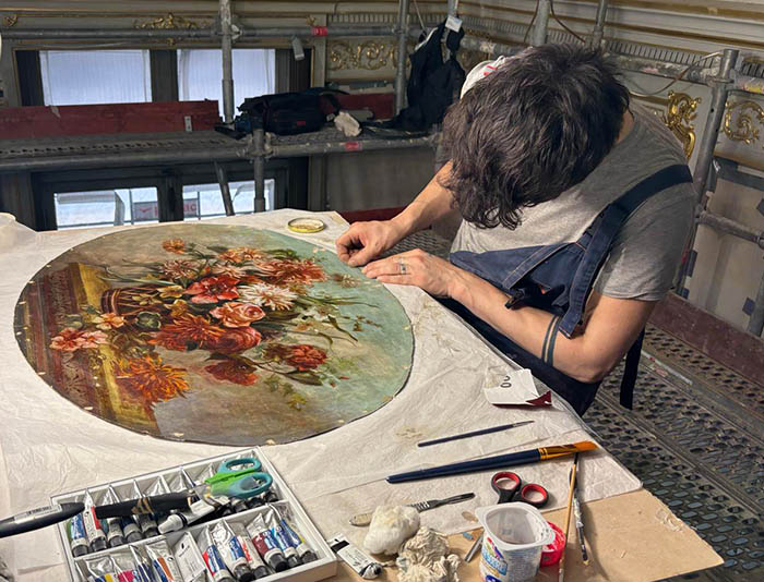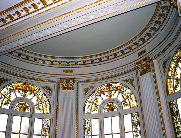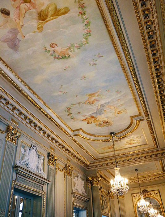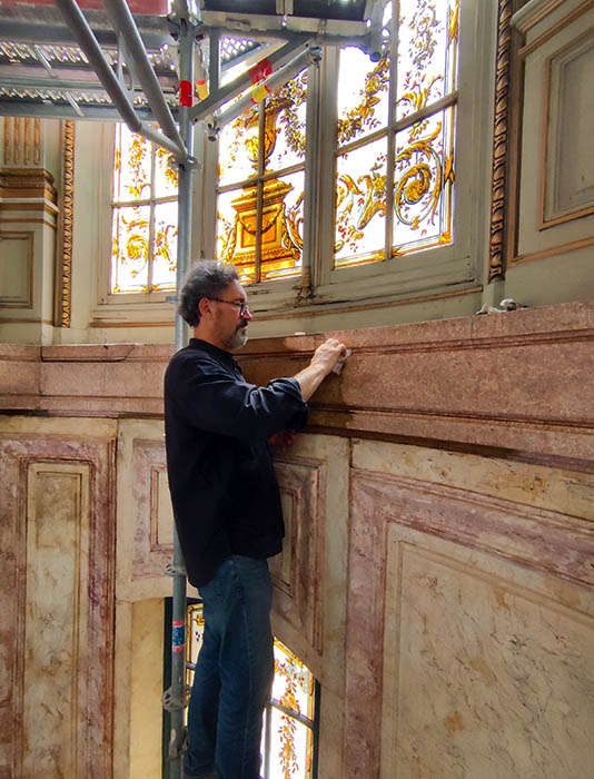 Substrats restaurés : ornementation (gypse)- peintures décoratives - huiles marouflées et sur chassis - dorures - stucs marbres