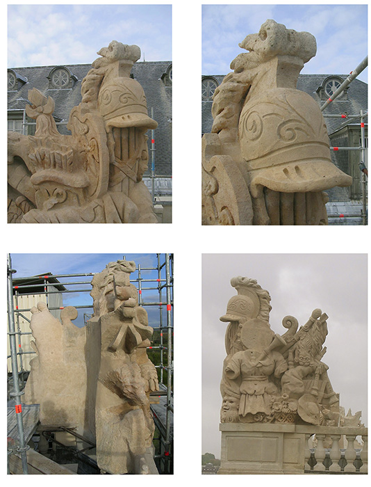 Prestations réalisées : direction de travaux de restauration Monument Historique ; expertise technique ; consolidation ; démontages/remontages structurels ; ragréage ; nettoyage ; sculpture neuve ; réintégration chromatique