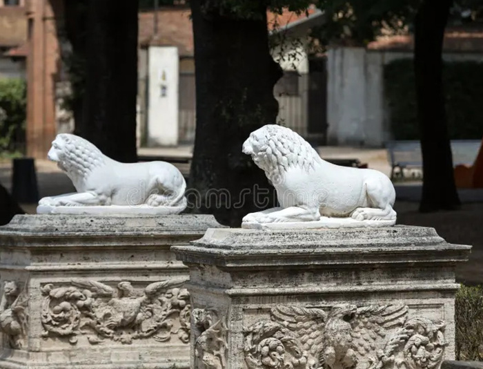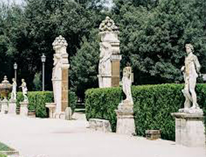 Substrats restaurés : sculpture pierre sur jardin