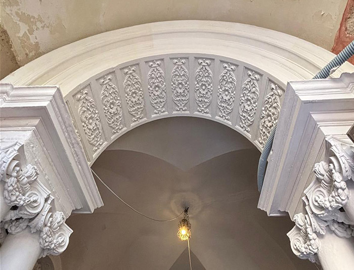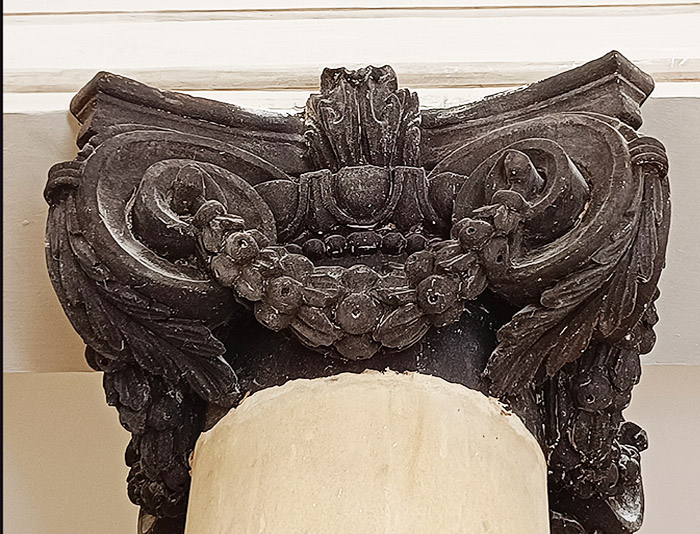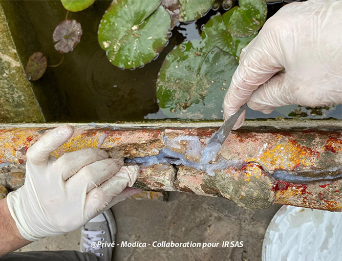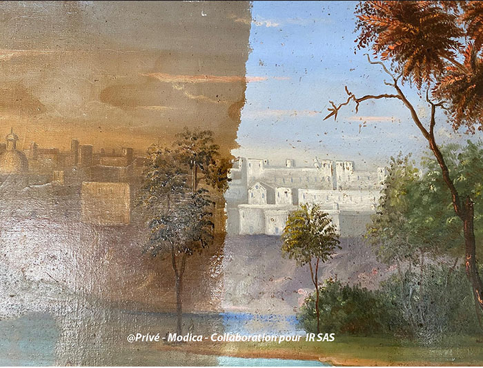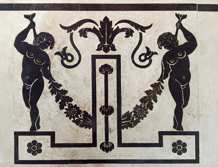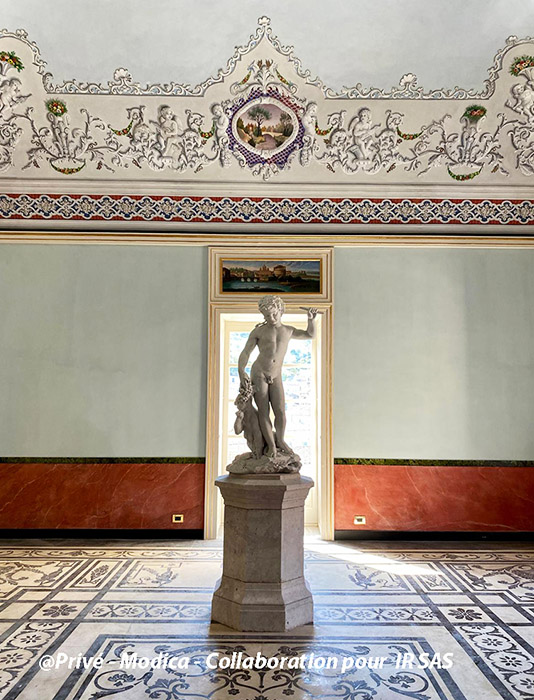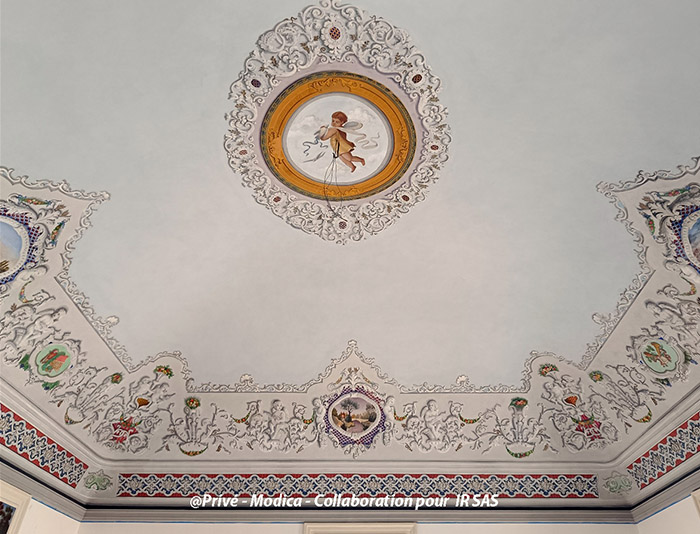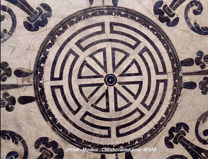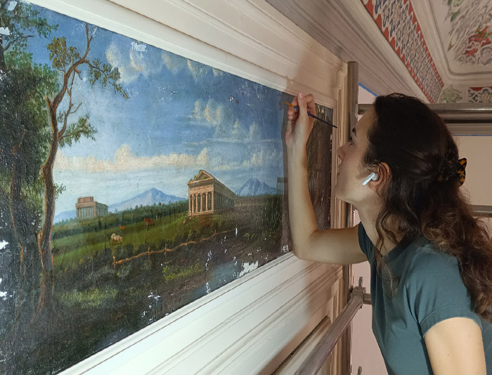 Substrats restaurés : marqueterie de pierres (sols); peintures décoratives ; peintures à l'huile ; sculpture sur pierre