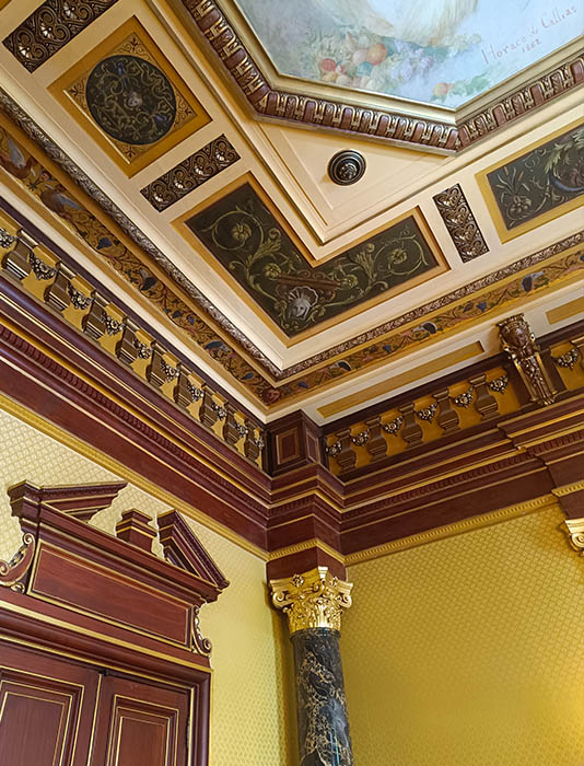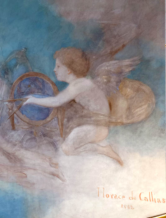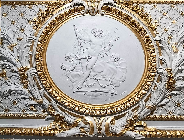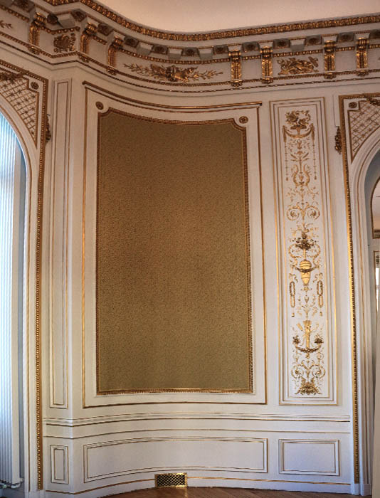Substrats restaurés : ornementation (gypse)- peintures décoratives - huiles marouflées et sur chassis - dorures - stucs marbres